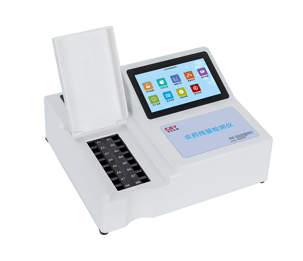 深芬儀器CSY系列安卓版農藥殘留快速測定儀可同時快速檢測多個樣品中的有機磷和氨基甲酸脂類農藥殘留含量,設備采用7寸彩色觸摸屏、安卓9.0操作系統、4G全網通訊、Wifi、網口、USB通訊、滿足農藥殘留測定數據的上傳、接收農藥殘留檢測任務、實時通訊、數據導出等功能,農藥殘留快速測定儀根據農業標準方法(NY/T 448-2001)和國家標準(GB/T5009.199-2003)中的酶抑制率法,嚴格遵循《GB/T5009.199-2003蔬菜中有機磷和氨基甲酸酯類農藥殘留快速檢測方法標準》中的規定對蔬菜中有機磷和氨基甲酸酯類農藥殘留的快速檢測;農藥殘留快速測定儀可廣泛應用于各級蔬菜檢測中心、農貿市場、超市、環保機構、蔬菜種植基地、飯店、車載及實驗室等食品安全檢測與監控場所等單位對果蔬中農藥殘留的檢測。